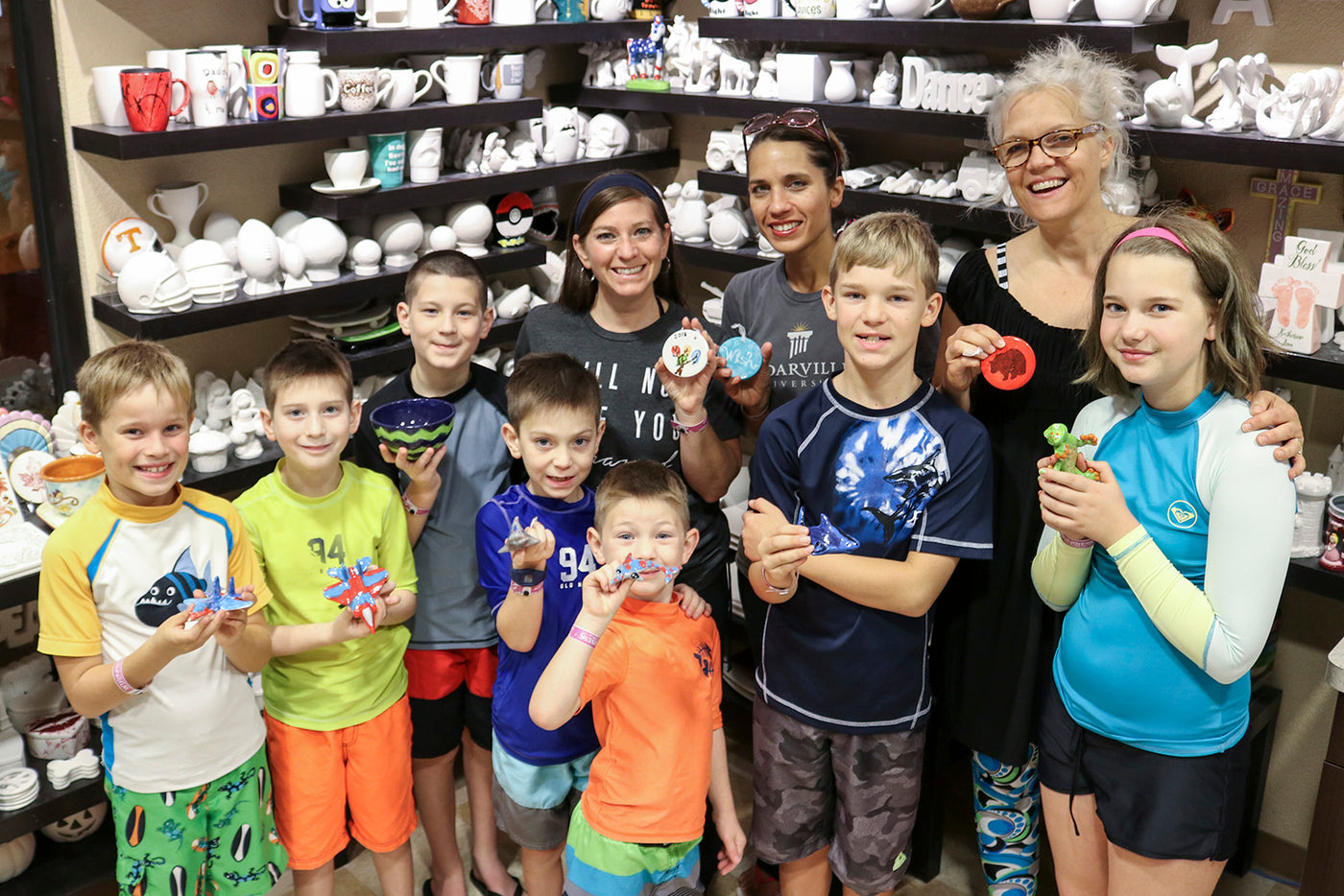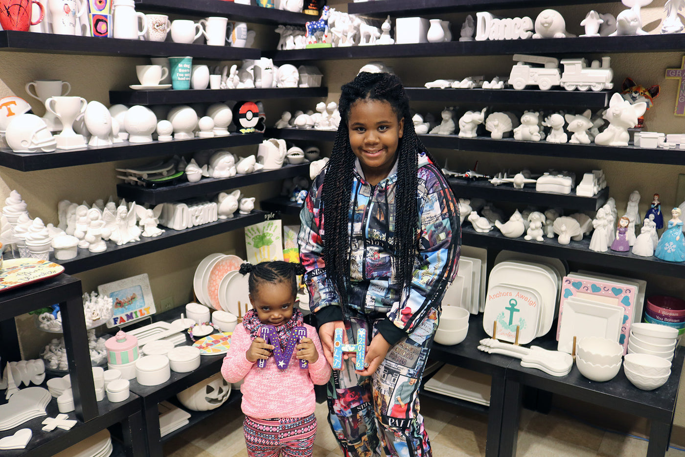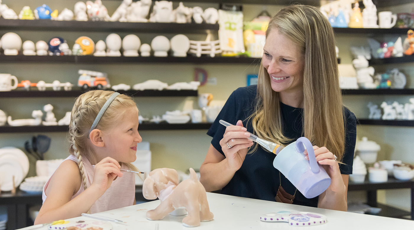 Choose from our huge assortment of pottery pieces, including plates, mugs, banks, boxes and more. Prices start at just $12!